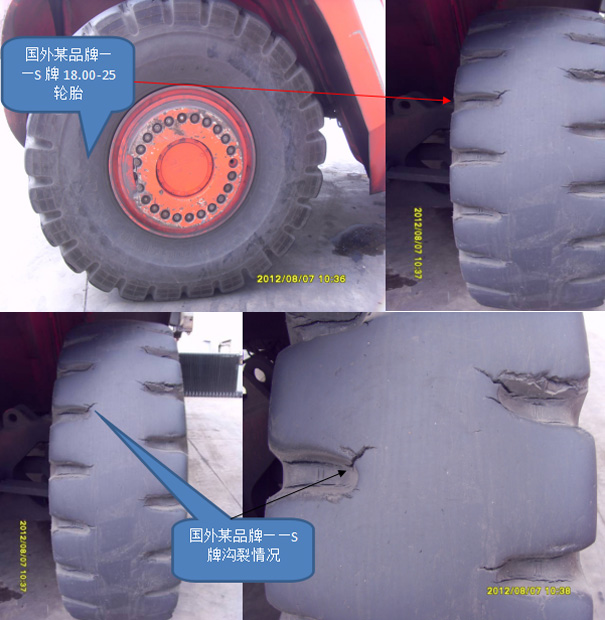 8、國(guó)外品牌輪胎使用情況,同樣出現(xiàn)花紋溝底裂口——大連勝獅國(guó)際