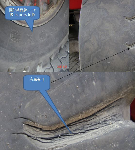 以下是我公司關(guān)于港機(jī)輪胎出現(xiàn)花紋溝裂和端點(diǎn)裂口的理論說(shuō)明和相關(guān)案例: